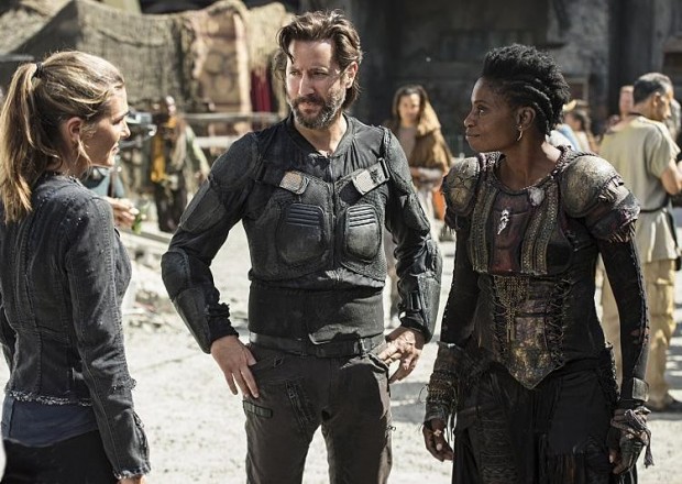 Dans la galerie de l’épisode 3×03 intitulé « Ye Who Enter Here », on retrouve notamment des photos d’une confrontation entre Clarke et Lexa mais également des clichés de kane, Abby et Indra.